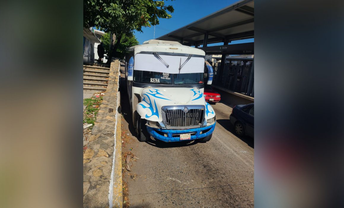 Un camión urbano se quedó sin frenos y se estampó contra un muro sobre la avenida Cuauhtémoc, en el puerto.