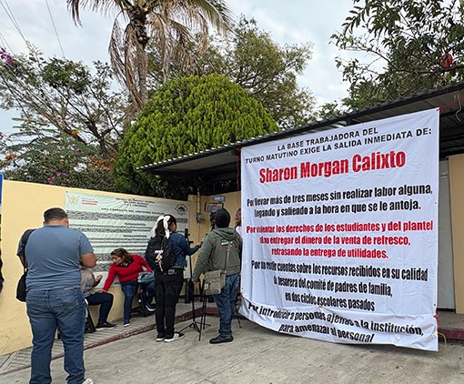 Aún con la protesta, los estudiantes ingresaron a sus clases y sólo se colocó una lona donde se demandaba la salida de la maestra.