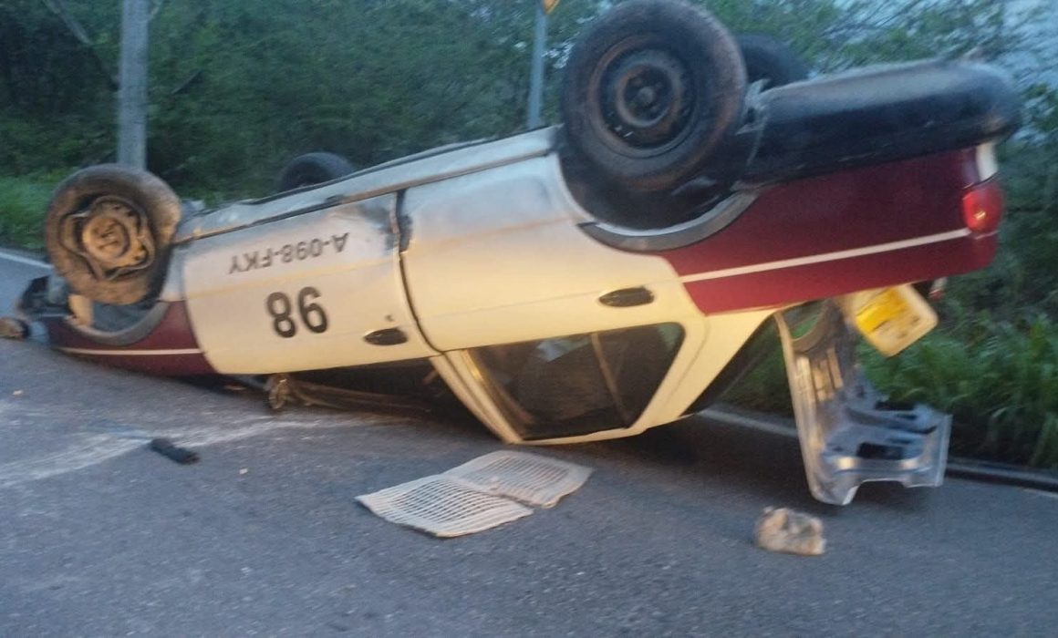El accidente ocurrió a las 6:30 horas, cuando al número de emergencias 911 se avisó de un taxi volcado marca Nissan, tipo Tsuru, con número económico 98.