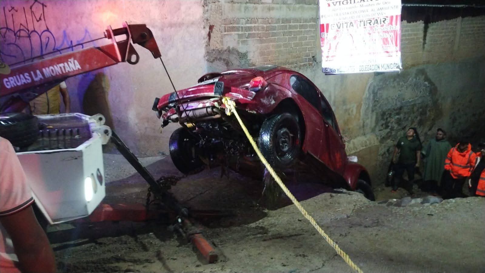 Personal de Protección Civil Municipal, en coordinación con elementos de Protección Civil Regional, acudió al lugar para realizar maniobras de rescate. Con el apoyo de una grúa, lograron extraer el vehículo sin que se reportaran personas lesionadas.