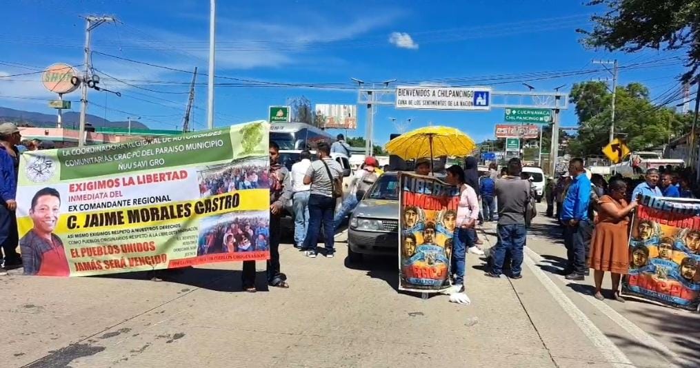 Chilpancingo, Gro. – Integrantes de la Coordinadora Regional de Autoridades Comunitarias – Policía Comunitaria (CRAC-PC) mantienen un bloqueo sobre la Autopista del Sol, a la altura del Parador del Marqués, para exigir la liberación de Jaime Morales Castro, comisario de Coapinola y miembro activo de esta organización, así como de otros cinco policías comunitarios de Xalpatláhuac.