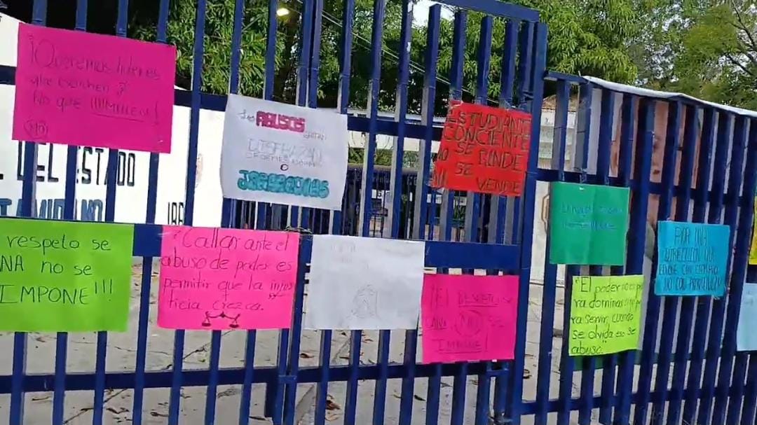 Aunque en el sitio no se encontraba ningún estudiante, docente ni autoridad presente para ofrecer una postura oficial, los mensajes colocados en las cartulinas dejan clara la inconformidad del estudiantado por presuntos actos de represión, imposiciones autoritarias y la falta de intervención de las instancias educativas correspondientes.