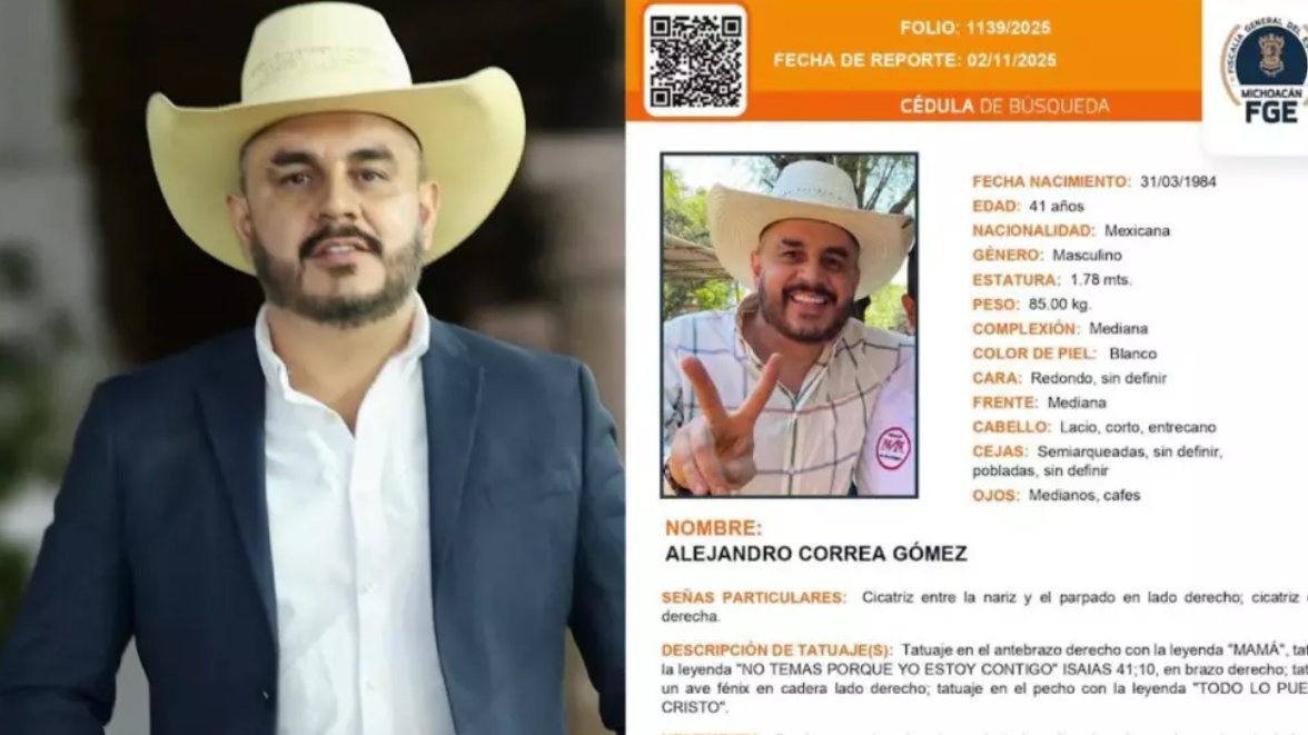 Correa, de 41 años, fue reportado como desaparecido tras perder contacto con sus familiares alrededor de las 2:00 de la madrugada en la zona de Tierras Coloradas, en el municipio de Hidalgo, a unas dos horas de Morelia. La Fiscalía difundió su ficha de búsqueda y una fotografía en la que se le distingue por una cicatriz en la ceja derecha. “Se teme por su integridad, ya que puede ser víctima de algún delito”, señala el comunicado oficial.