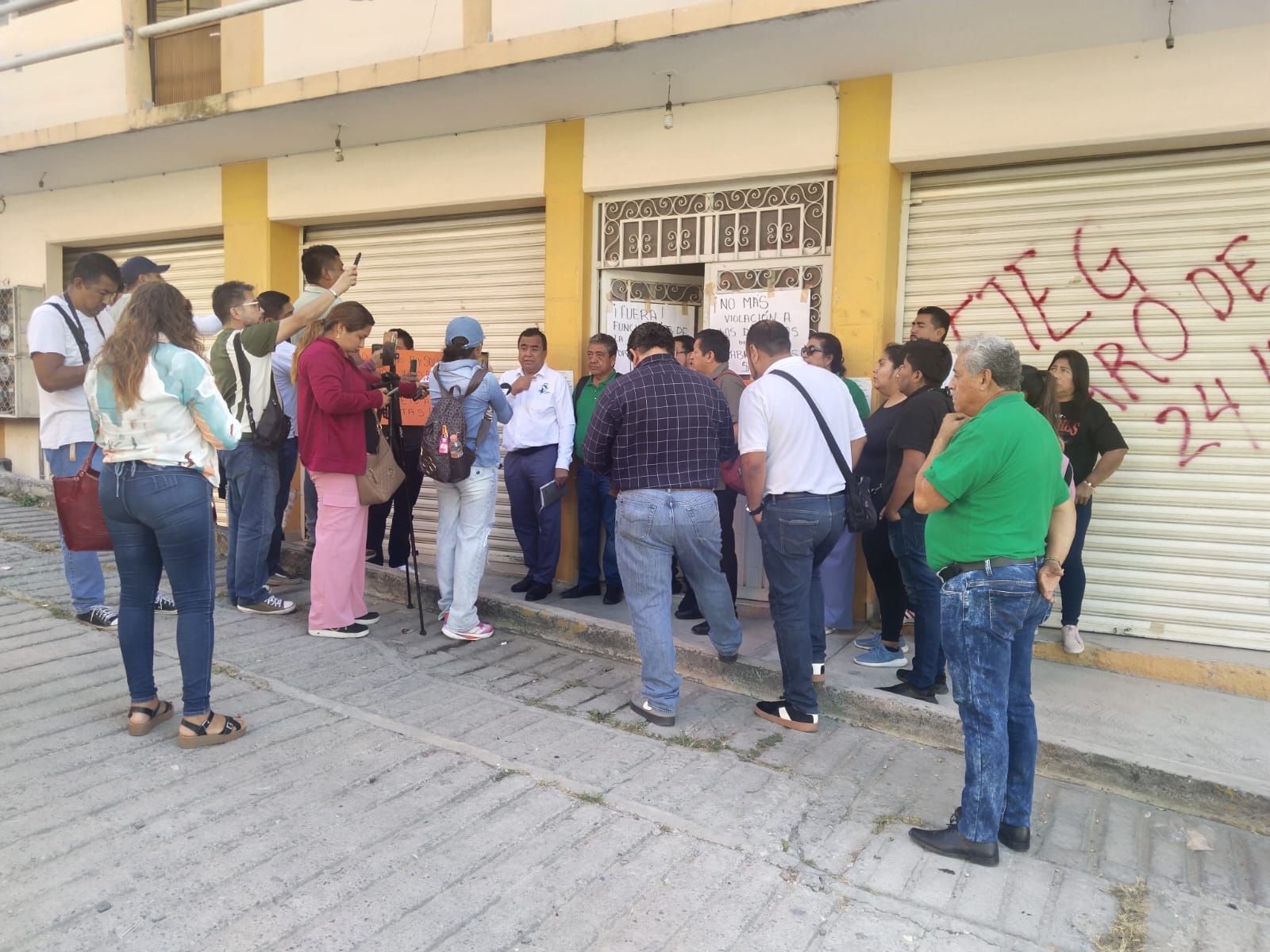 La movilización inició en la oficina del Jurídico, ubicada en la colonia Tribuna Nacional, donde los inconformes desalojaron al personal administrativo, cerraron el acceso principal y colocaron pancartas en la fachada como forma de protesta.
