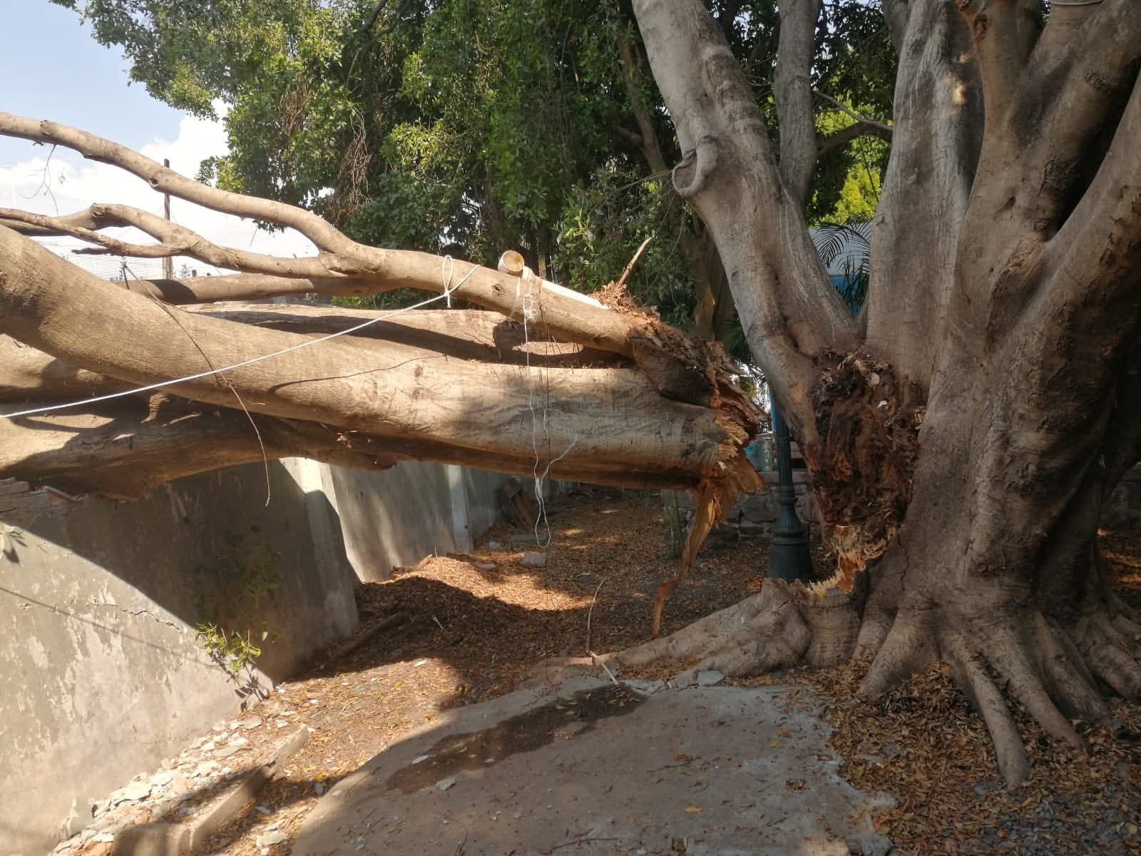 La caída provocó afectaciones en al menos tres viviendas colindantes, entre ellas un cuarto donde se resguardaban perros, una cocina y el techo de lámina de otro domicilio. Personal de Protección Civil acudió al sitio para retirar el árbol y evaluar los daños ocasionados.