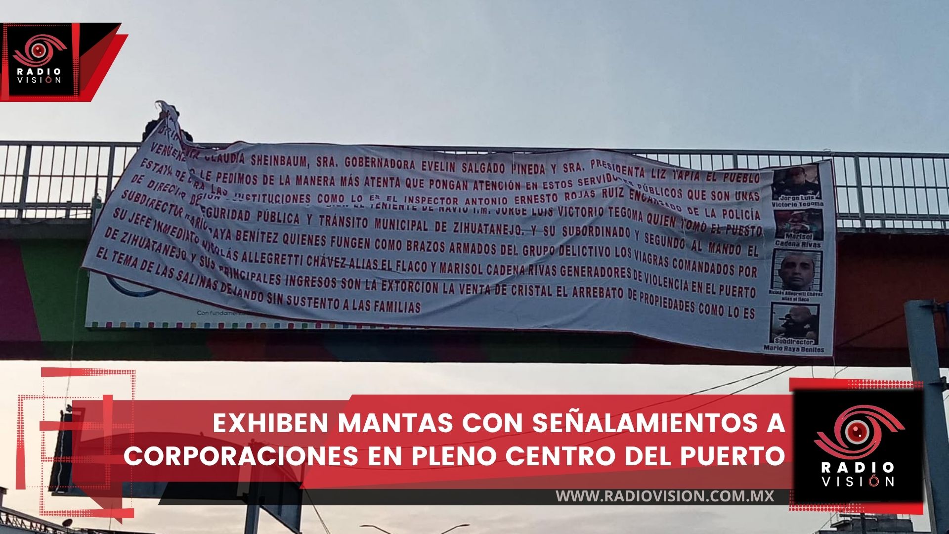 La mañana de este sábado fueron colocadas varias lonas en puntos visibles del puerto de Zihuatanejo, en las que se acusa a mandos policiales de presuntos vínculos con la delincuencia organizada.