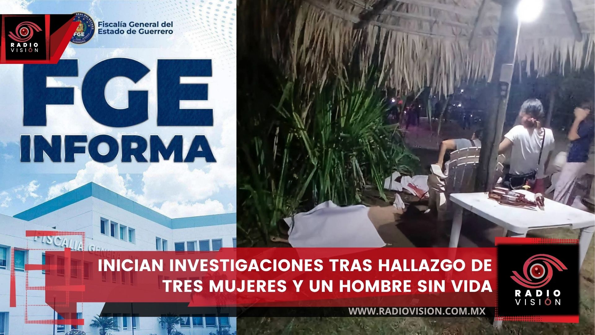La Fiscalía General del Estado de Guerrero inició una carpeta de investigación tras el hallazgo de cuatro personas sin vida, tres mujeres y un hombre, en la zona de Barra Vieja, en el municipio de Acapulco de Juárez.