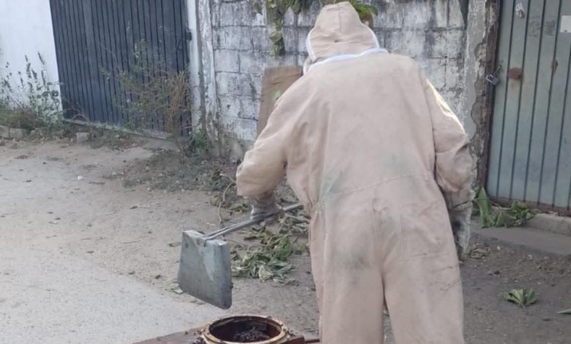 Elementos de bomberos y una ambulancia de la misma corporación realizaron maniobras en la zona para controlar el enjambre y evitar más afectaciones.