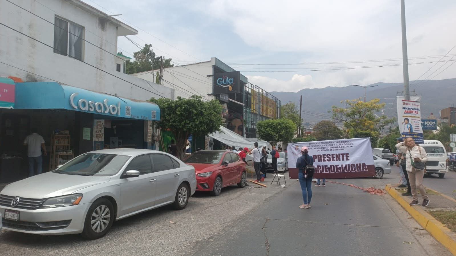 Integrantes del Sindicato Democrático del CECyTEG marcharon en Chilpancingo y se instalaron en plantón frente a sus oficinas, en protesta por lo que consideran una falta de respuesta a sus demandas laborales.
