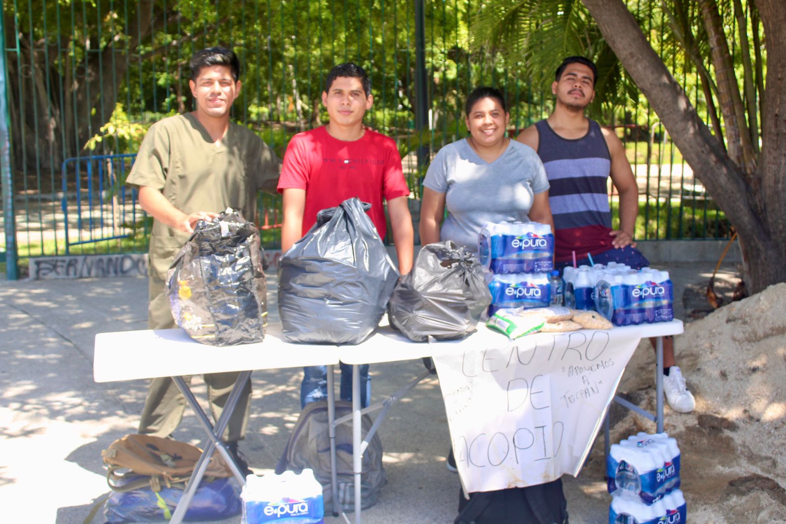 Instalan jóvenes originarios de Técpan centro de acopio en el Parque Papagayo