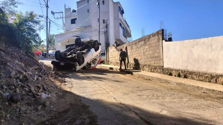Once lesionados deja volcadura de camioneta de pasajeros en Acapulco