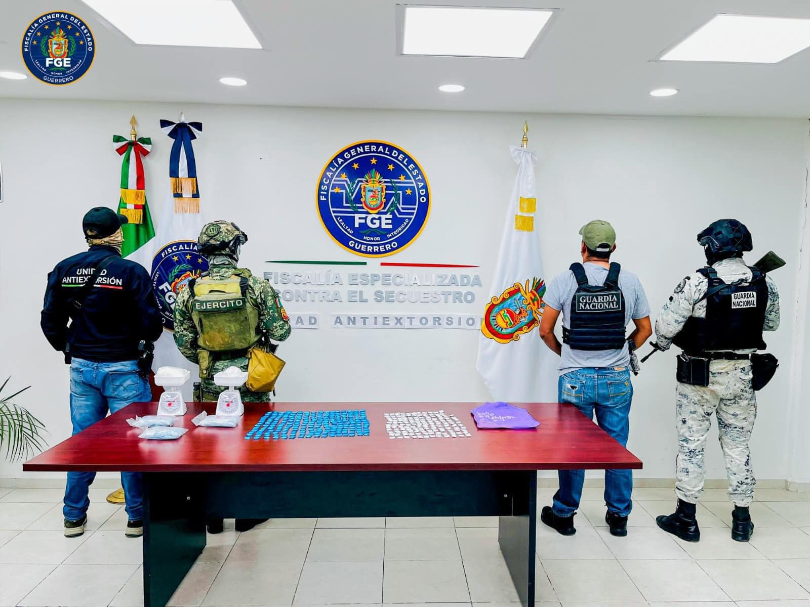 FGE Guerrero asegura más de 600 dosis y más de 1000 gramos de presunta droga sintética en Acapulco