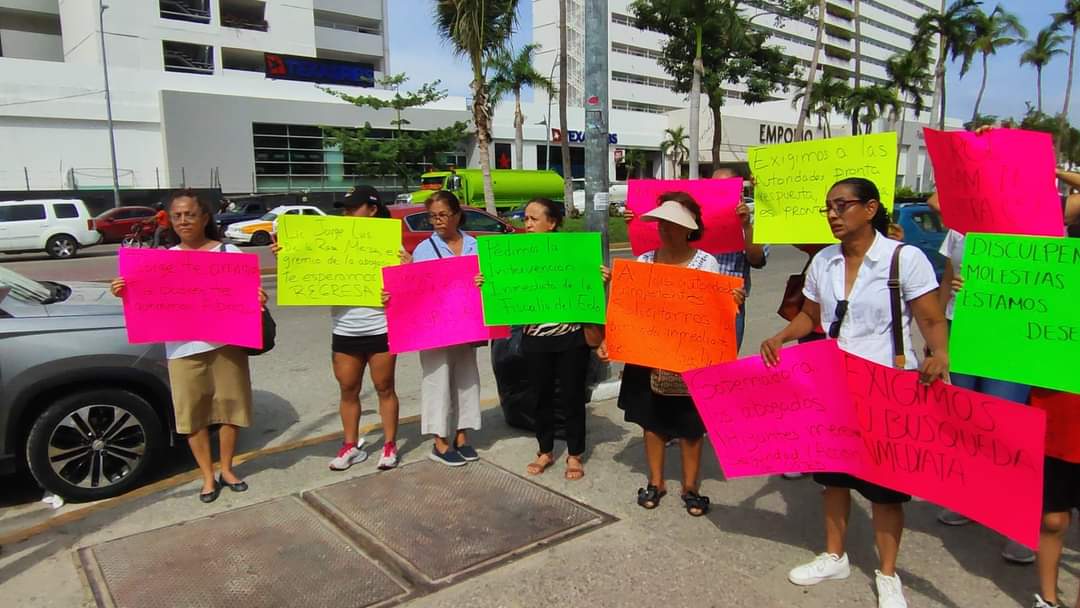 Minutos antes de las 10 horas de este jueves, alrededor de 20 personas entre familiares, amigos y abogados, hicieron una protesta en la banqueta de la vía turística y después bloquearon tres carriles del sentido Base-Caleta.