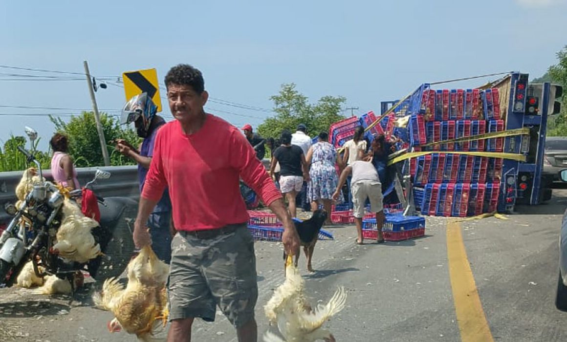 Este es el segundo camión que trasladaba pollos que vuelca en la carretera de la región Costa Grande.