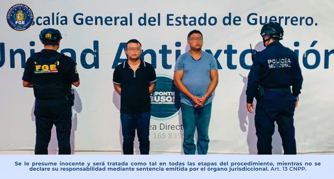 La Fiscalía General del Estado de Guerrero (FGE), con el apoyo de elementos de la Policía Municipal de Zihuatanejo, lograron la detención en flagrancia de Elías “N” y Jorge «N», por su probable participación en el delito de extorsión agravada, cometido en perjuicio de una víctima de identidad reservada por los hechos ocurridos en dicha localidad.