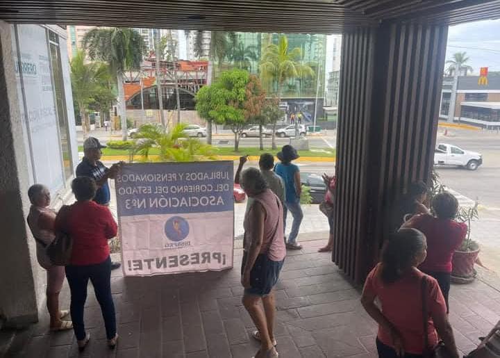Jubilados y pensionados del gobierno del estado tomaron las oficinas de la Administración Fiscal número uno en el fraccionamiento Costa Azul de este puerto para exigir su pago completo correspondiente al mes pasado.